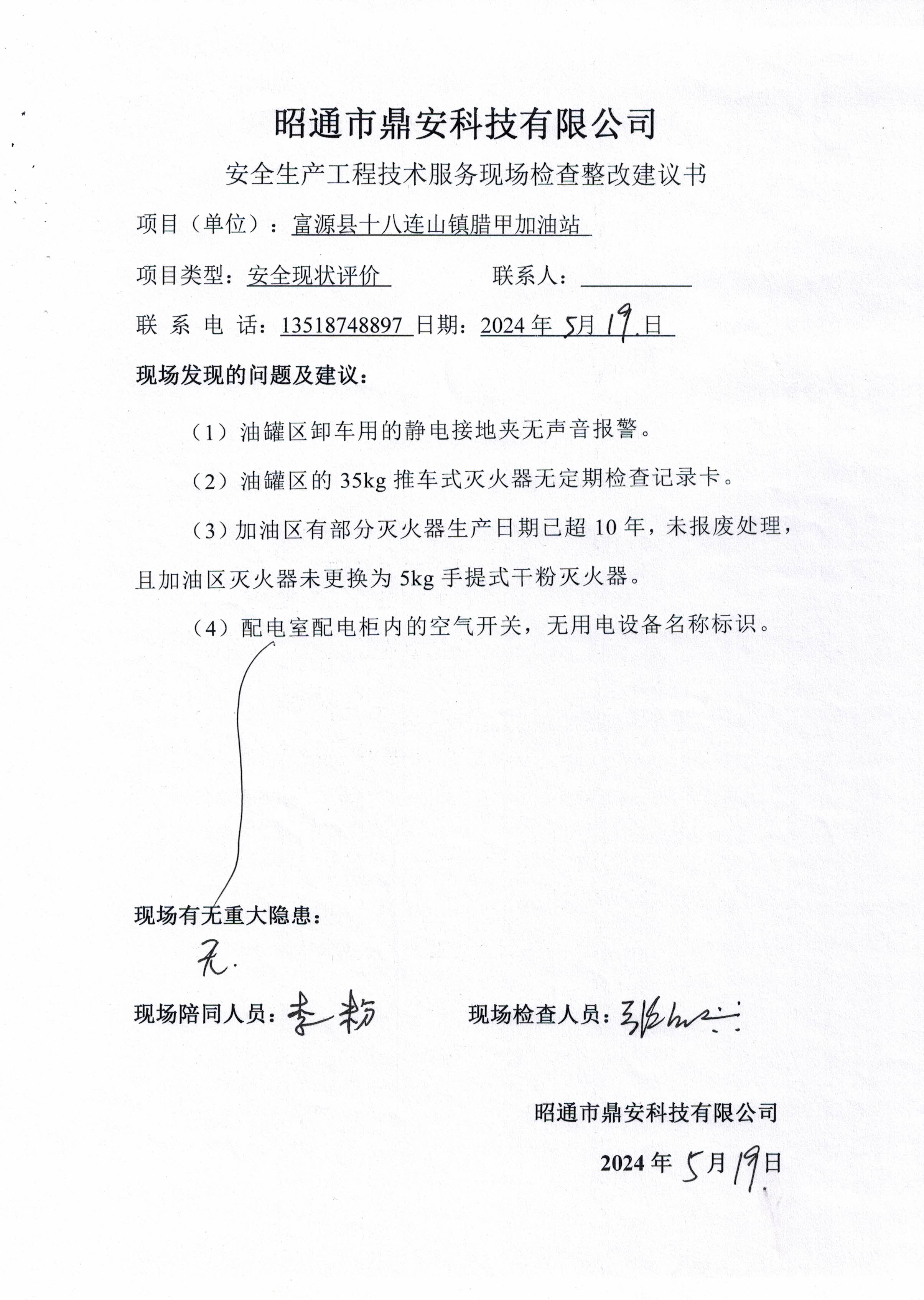 項目名稱 | 富源縣十八連山鎮臘甲加油站安全現狀評價報告 | 合同編號 | DAAPQJ2024-24 | |||||